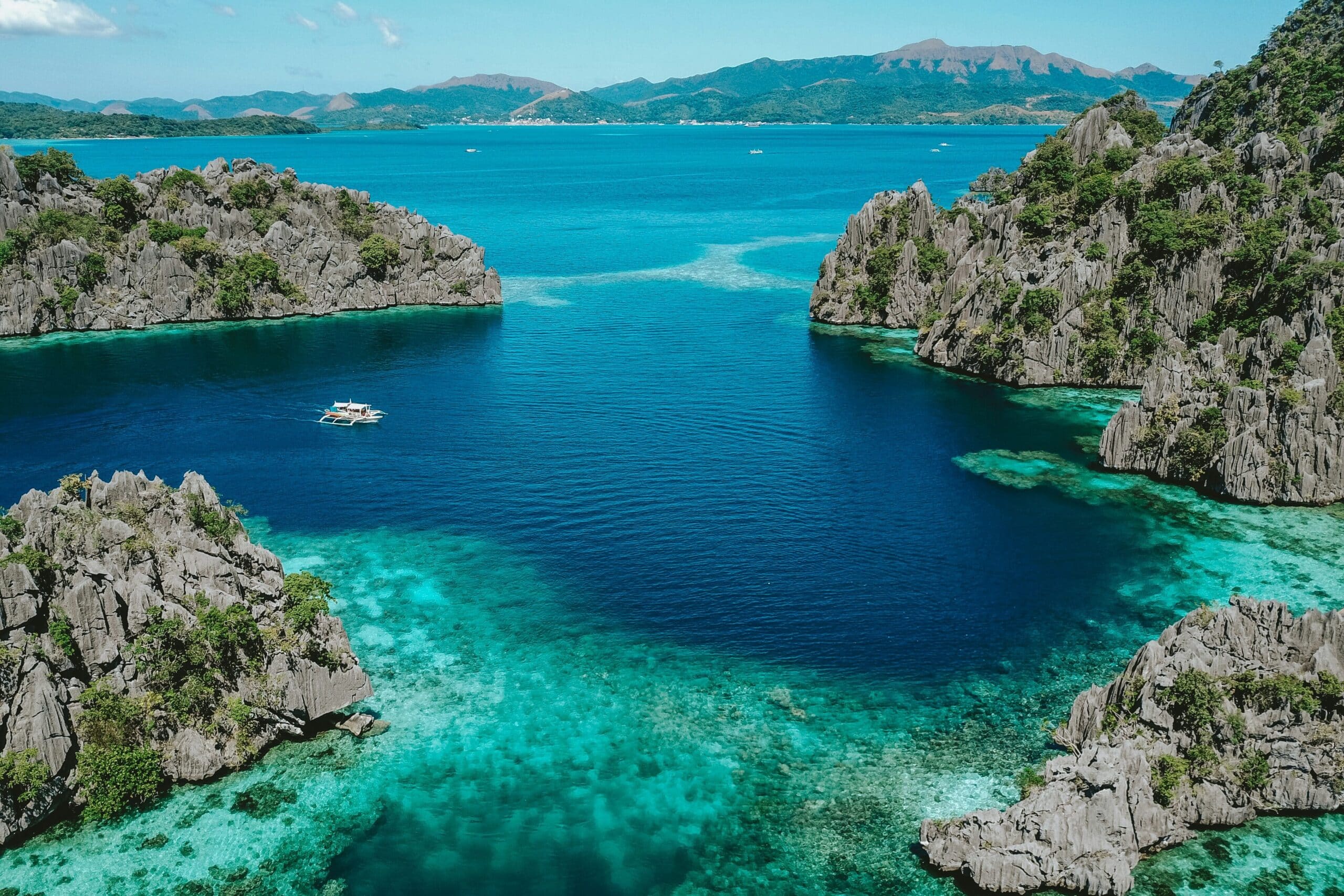 Palawan wordt vaak “het mooiste eiland ter wereld” genoemd. In El Nido maak je boottochten langs verborgen lagunes, witte stranden en indrukwekkende kalksteenrotsen. Coron staat bekend om zijn kristalheldere meren en scheepswrakken die populair zijn bij duikers.